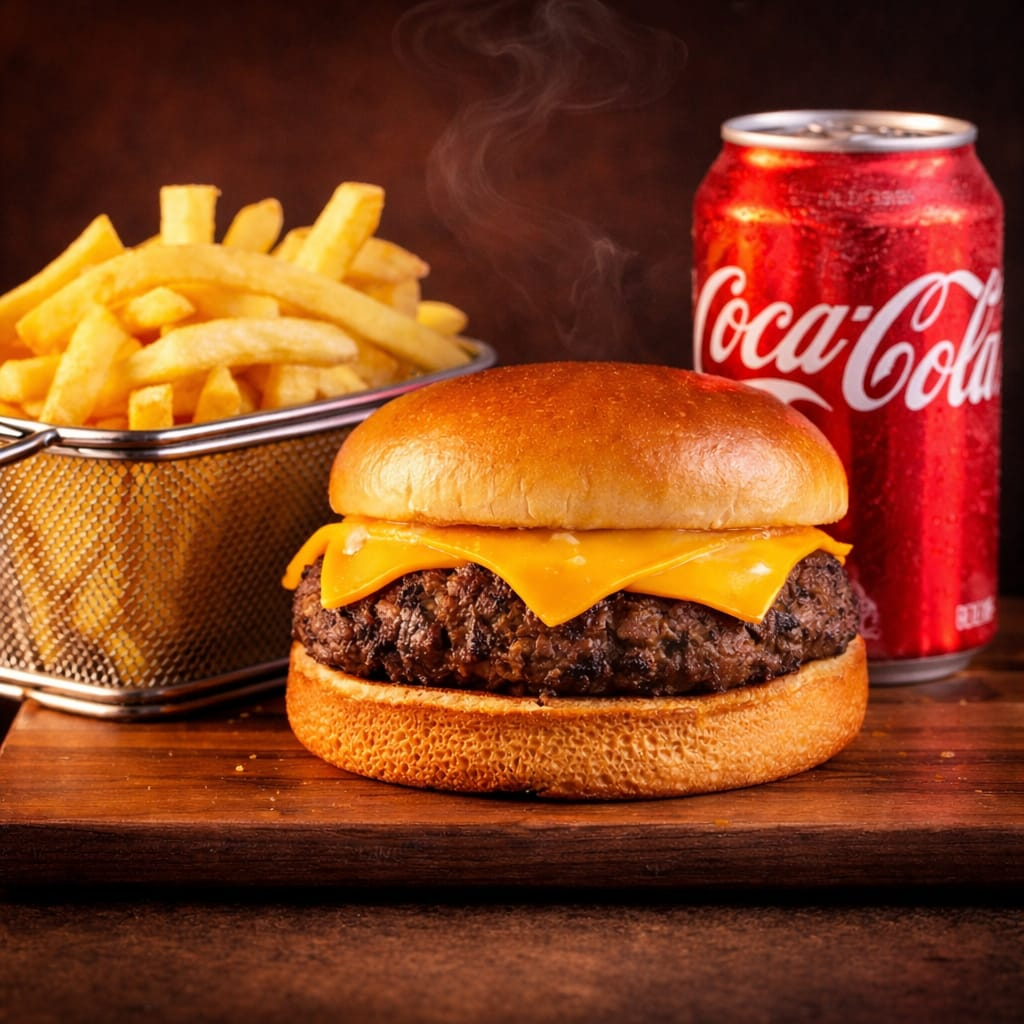 Um hambúrguer suculento blend na brasa de 140 gr, coberto com uma fatia derretida de cheddar, servido em um pão brioche macio e levemente tostado, este clássico é perfeito para quem aprecia o sabor puro e autêntico de um bom hambúrguer. Simples, mas irresistível!