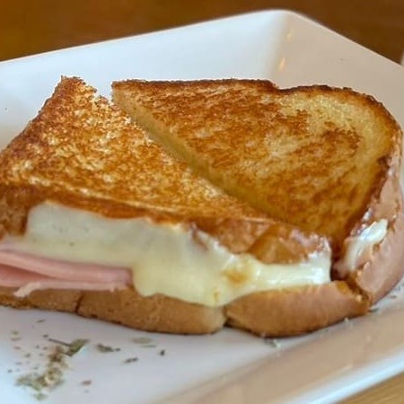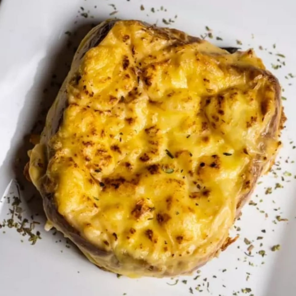 Pão selado dos dois lados com manteiga e recheado com presunto e bastante mozzarella, uma generosa cobertura de molho bechamel, parmesão e levado forno até gratinar.