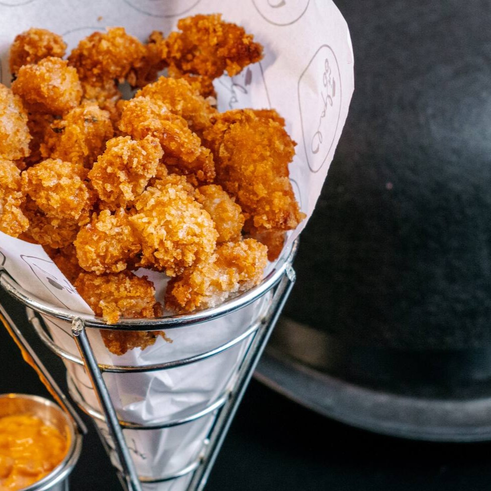 Frango Chaplin Pedaços de frango levemente apimentados e super crocante. Acompanha até dois molhos de sua preferencia.