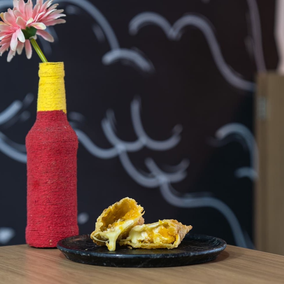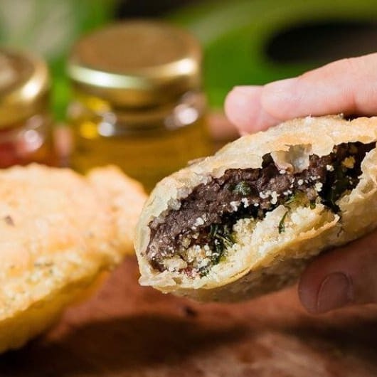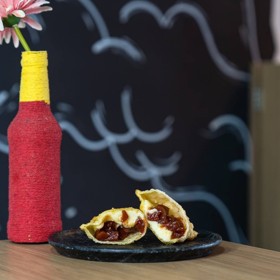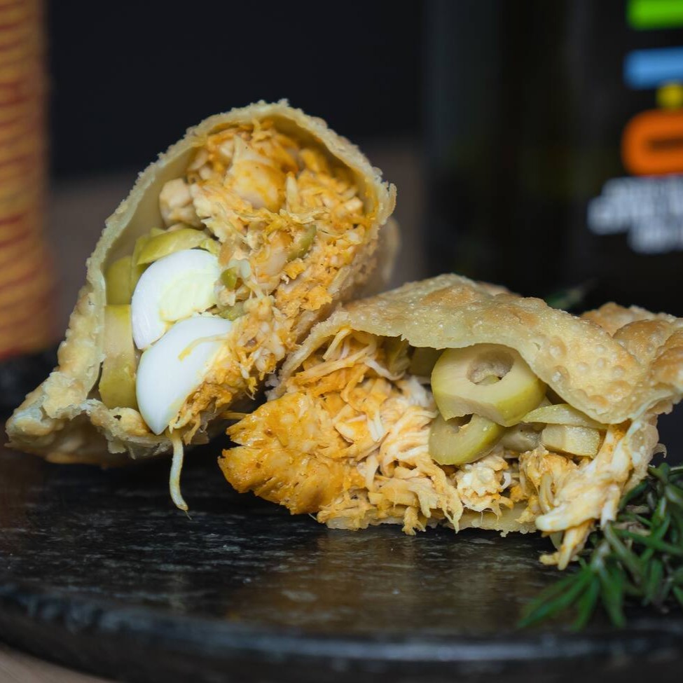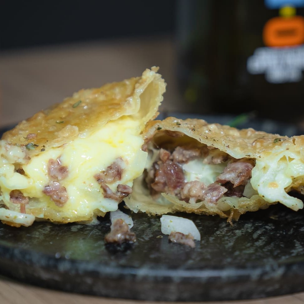Pastel De Queijo Canastra Com Cebola Crispy E Azeitonas