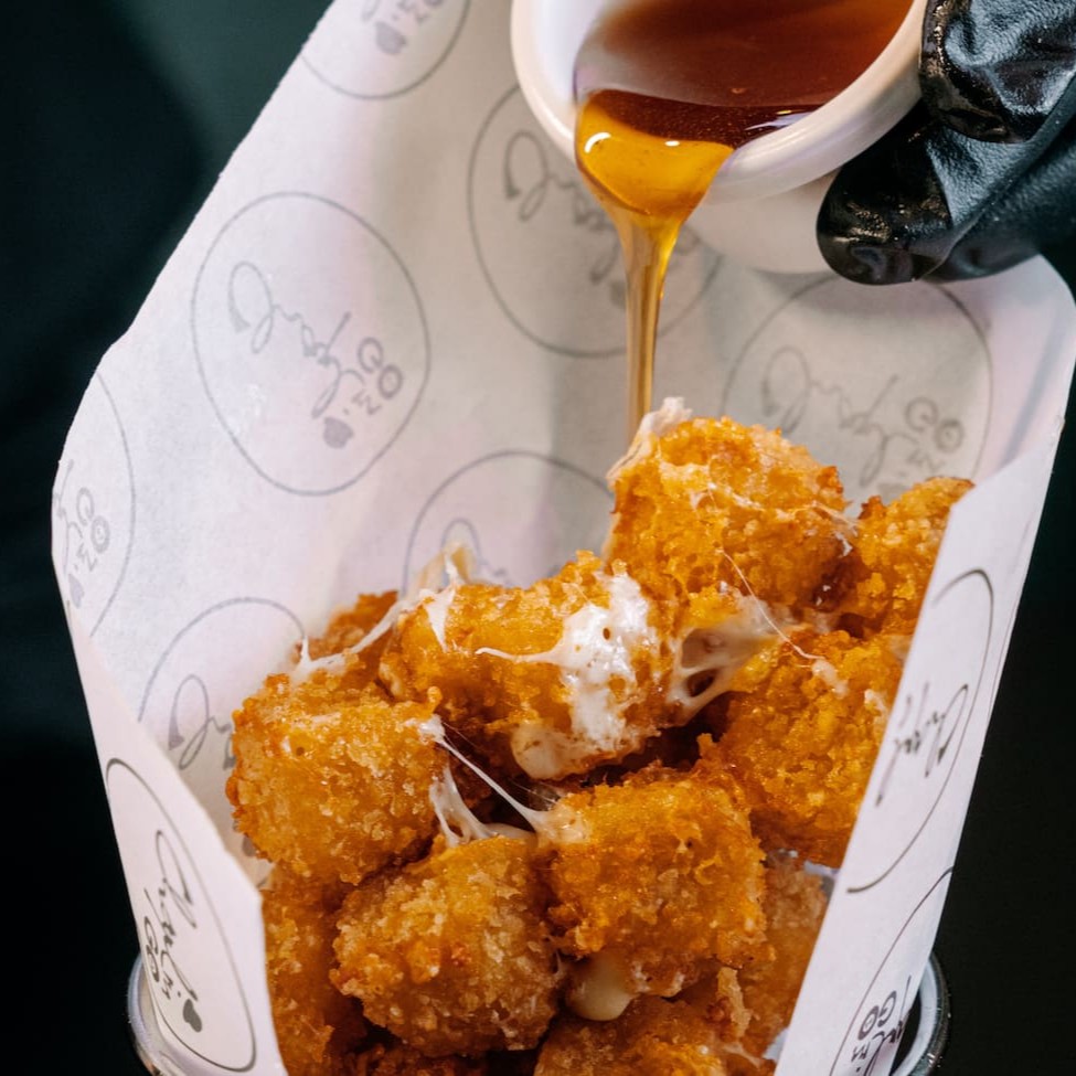 Provolone Crocante Deliciosos cubos de provolone, empanados com farinha panko, acompanhado de mel de gengibre.