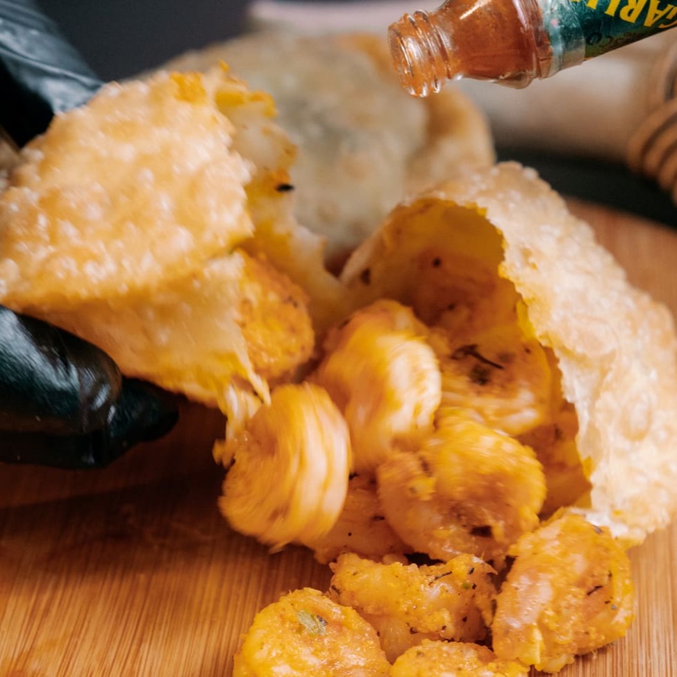 Tapioca De Camarão Com Padrão E Cebola Crispy