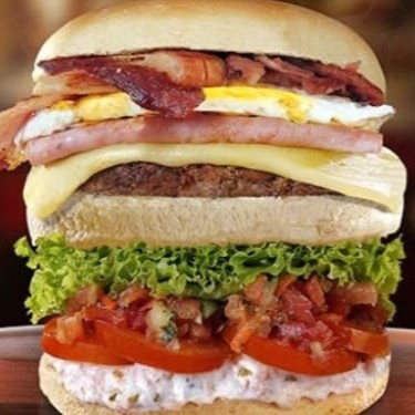 Pão, hamburguer, queijo, presunto, bacon, ovo, catchup, maionese, milho, ervilha, batata palha, ovo de codorna, azeitona, salada, sal, azeite e queijo ralado