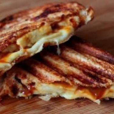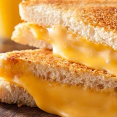 Fatias generosas de queijos derretidos, selados no pão crocante, perfeitos para os amantes de queijo.