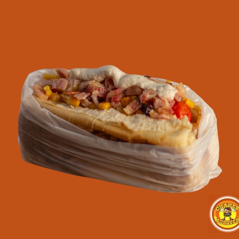 O tradicional que não decepciona! O nosso cachorro quente é o carro chefe da casa há anos! Nossa tradição desde 1994(…) Pão, salsicha ou linguiça, molho cozido com cebola, tomate e pimentão, cheddar, Catupiry, ketchup, maionese, batata palha, alface, milho, ervilha, ovo de codorna, azeitona, passas, sal, azeite e queijo ralado.