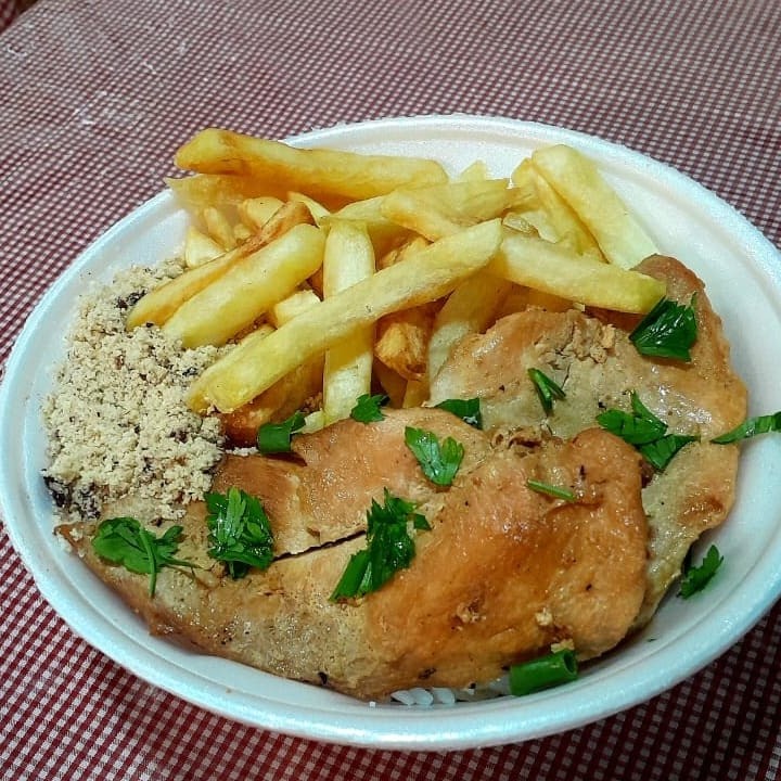 A 10 anos o mais pedido do Chef's Bar, muito bem servido. Filé de alcatra, filé de frango e linguiça feito na hora, tempero caseiro, simples e bom. Comida farta e verdadeiramente caseira. Acompanha: Filé de Frango em tiras Filé de Alcatra em tiras Linguiça Toscana fatiada Arroz Branco Feijão Farofa Batata Frita