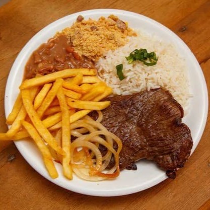 Acompanha arroz, feijão, farofa e o acompanhamento.
