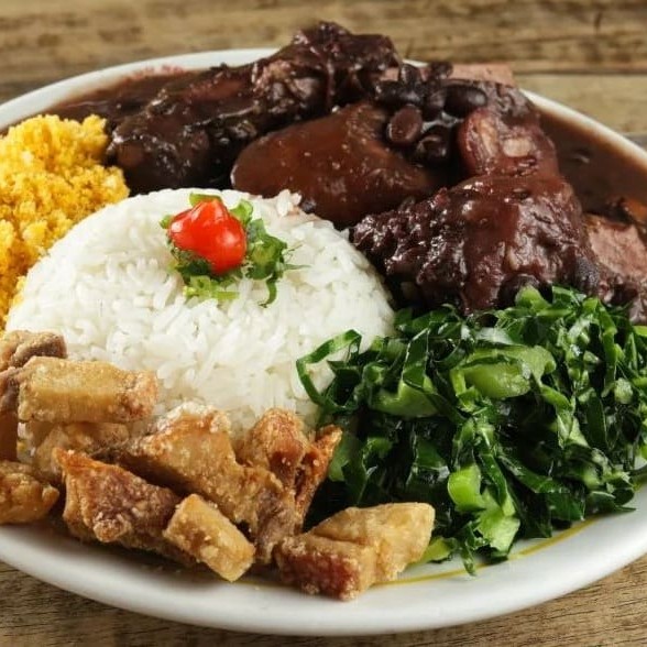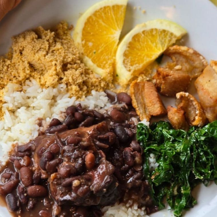 Acompanha: Arroz, feijão, farofa, couve e laranja
