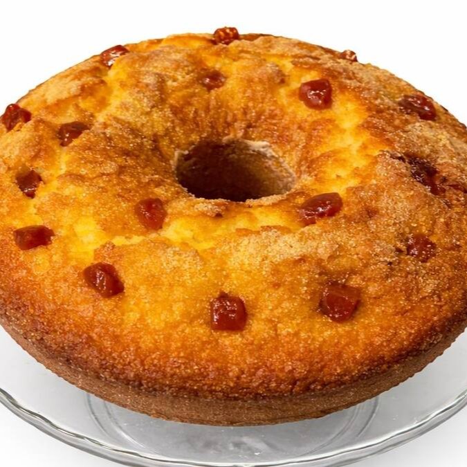 Uma deliciosa fatia de bolo fofinho, com gotas de goiabada