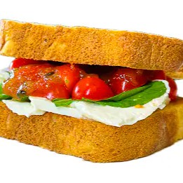 Experimente nosso Sanduba Tropical feito com fatia de pão artesano, recheado com queijo minas, rúcula, tomate cereja e geleia de manga com maracujá.