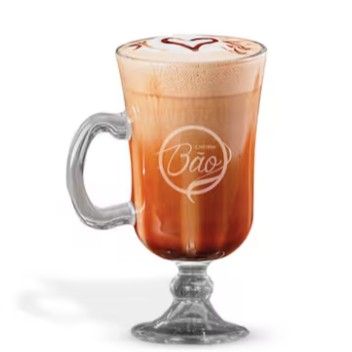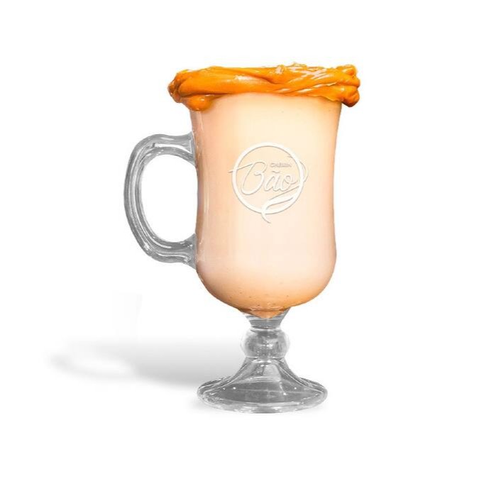 Bebida quente de 240ml, cremosa e intensa, feita com chocolate especial Cheirin Bão.
