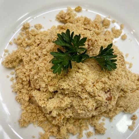 Farofa temperada preparada com farinha de mandioca fina e bacon . Aproximadamente 200g | porção para 1 à 2 pessoas | não é possível sofrer alterações * somente para consumo imediato * embalagem própria para aquecimento em microondas, se necessário.