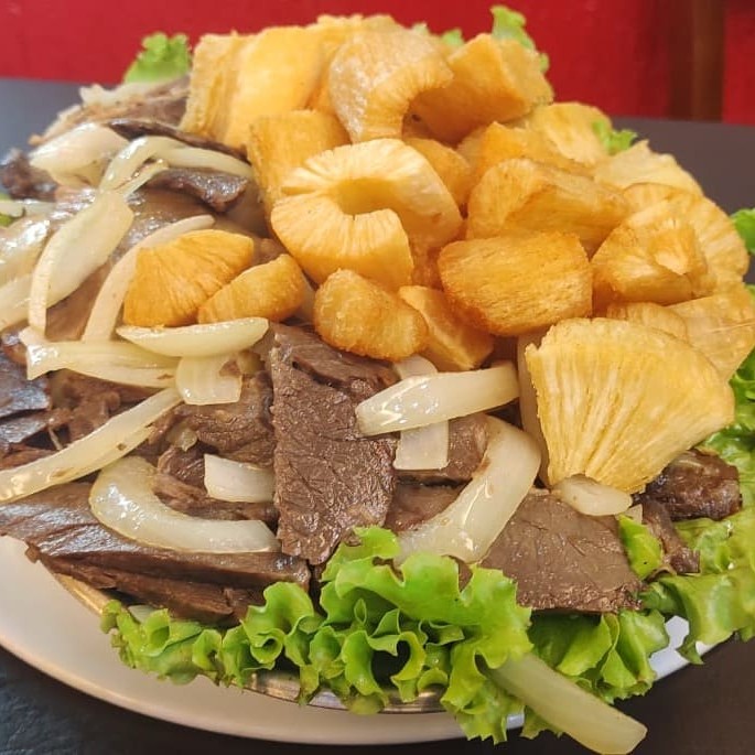 Arroz, Feijão, Macarrão, Farofa, Batata Frita *Alcatra