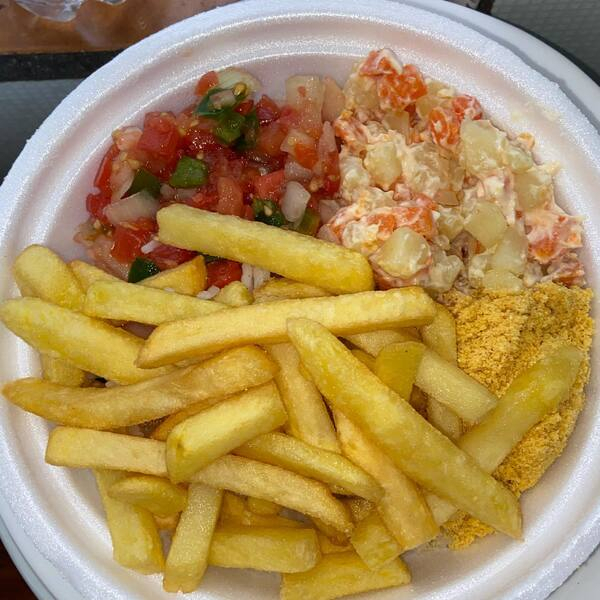 Marmita P E Coca Cola 600ml. (100g De Churrasco, Arroz, Maionese, Batata Frita, Molho E Farofa).