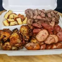 Churrasco misto (CARNE, FRANGO E LINGUIÇA) com direito a 3 acompanhamentos