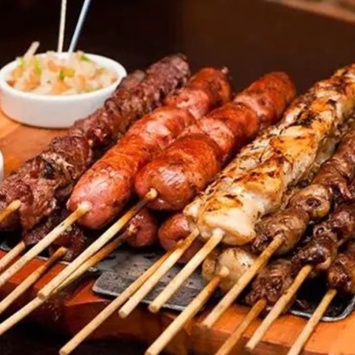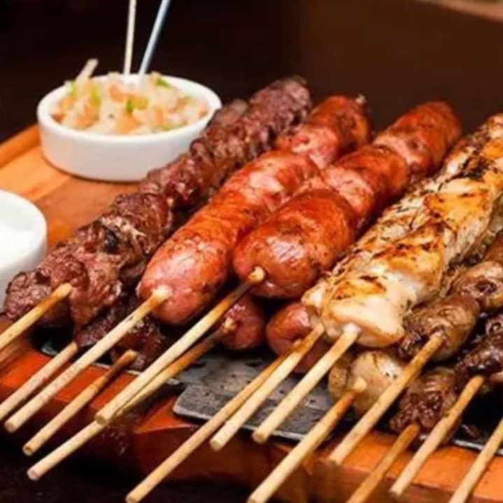 Delicioso espeto de churrasco misto napolitano (carne , frango e linguiça Toscana ),com aquele tempero especial (foto meramente ilustrativa)