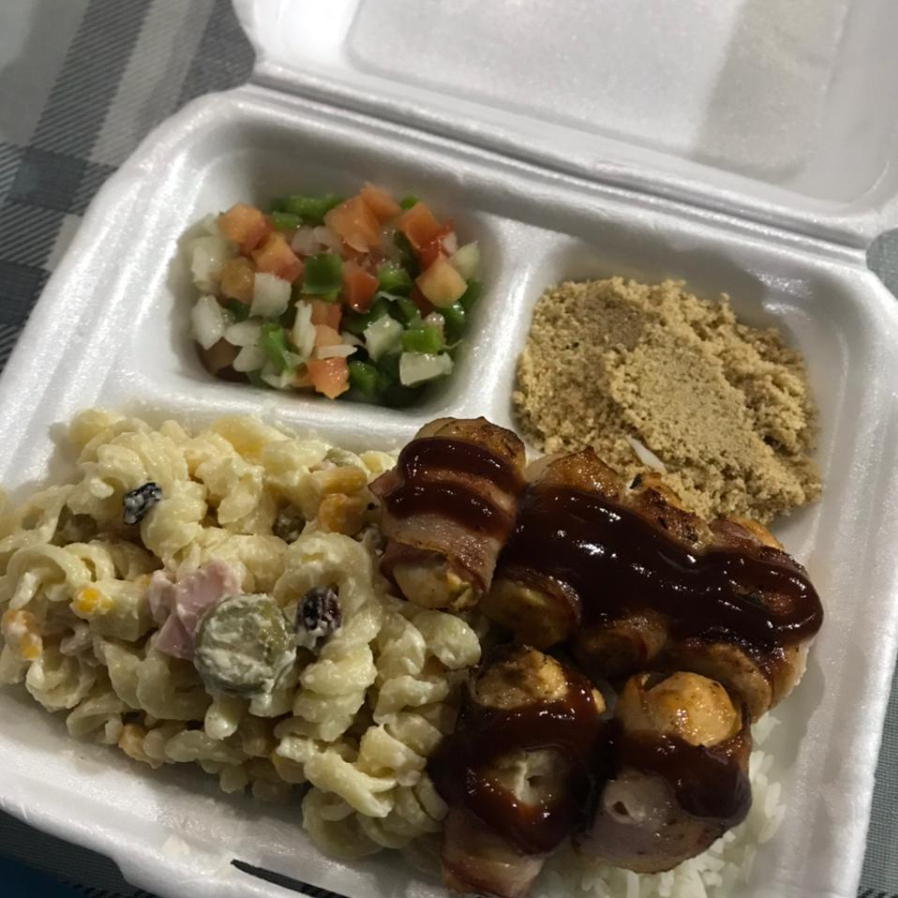 Perfeito pra quando bater aquela preguiça. 2 espetos de sua preferencia, acompanhado de 1 arroz (pequeno), 1 macarronese (pequena), Farofa e Vinagrete.