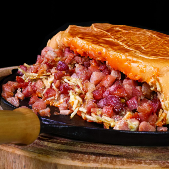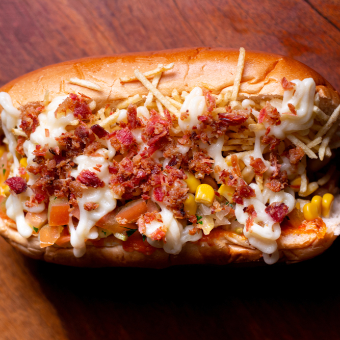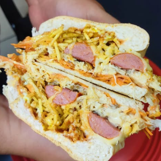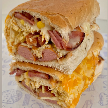 Pão, Carne, Queijo, Ovo, Bacon, Calabresa, Cheddar, Catupiry, Salada, maionese e ketchup