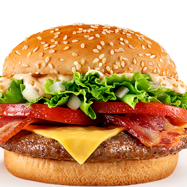 Pão, Carne, Queijo, Salada, Bacon, maionese e ketchup