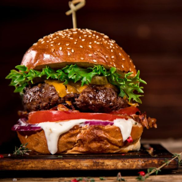 Pão, Carne, Queijo, Salada, maionese e ketchup