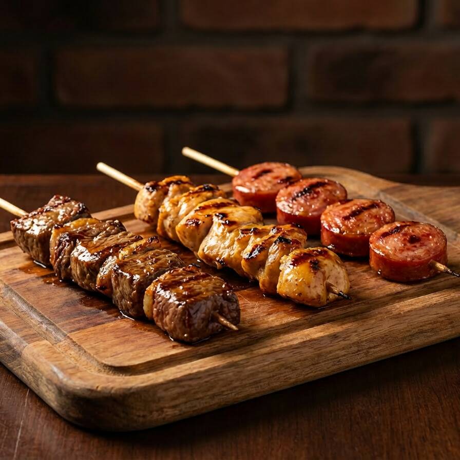 Um Espeto de Alcatra , Um Espeto de Frango, Um Espeto de Linguiça Toscana