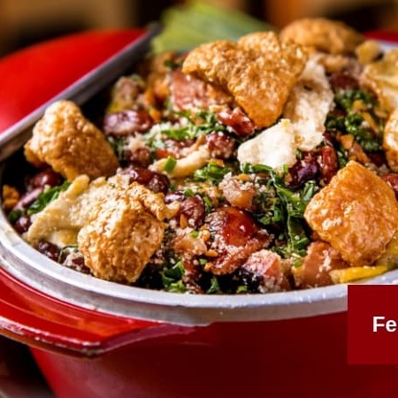 Capitão de alcatra angus, prime rib duroc pork, filé de coxas de frango e linguiça duroc pork, acompanha arroz tropeiro, chips de batata frita, farofa e vinagreta.