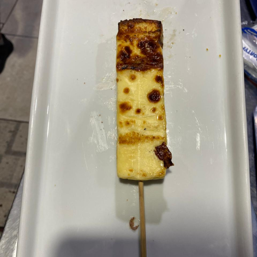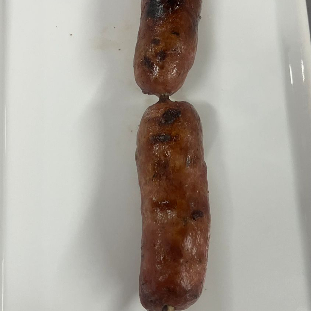 Batata,arroz,molho,farofa,maionese ou macarronese,2 ovos de codorna e um espeto