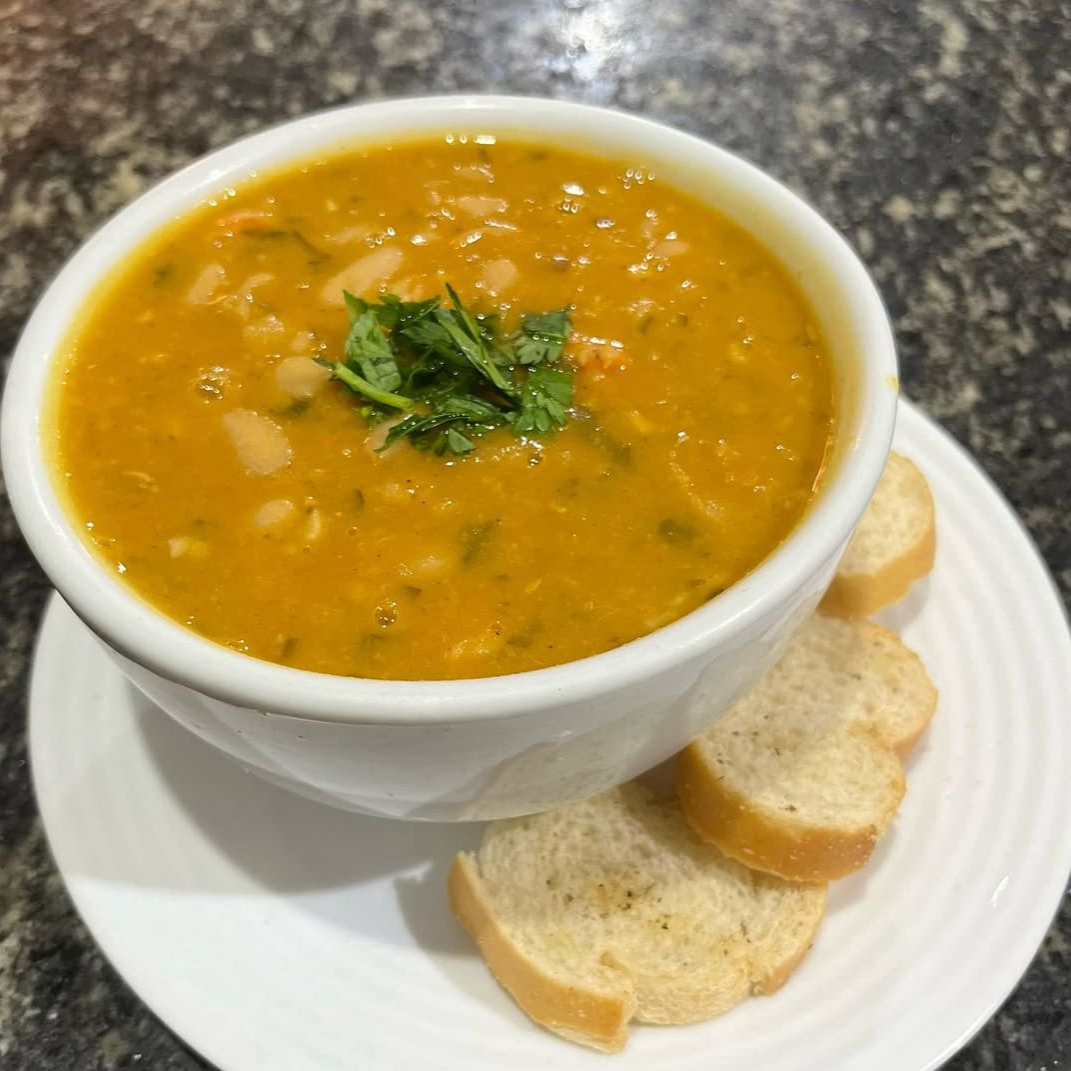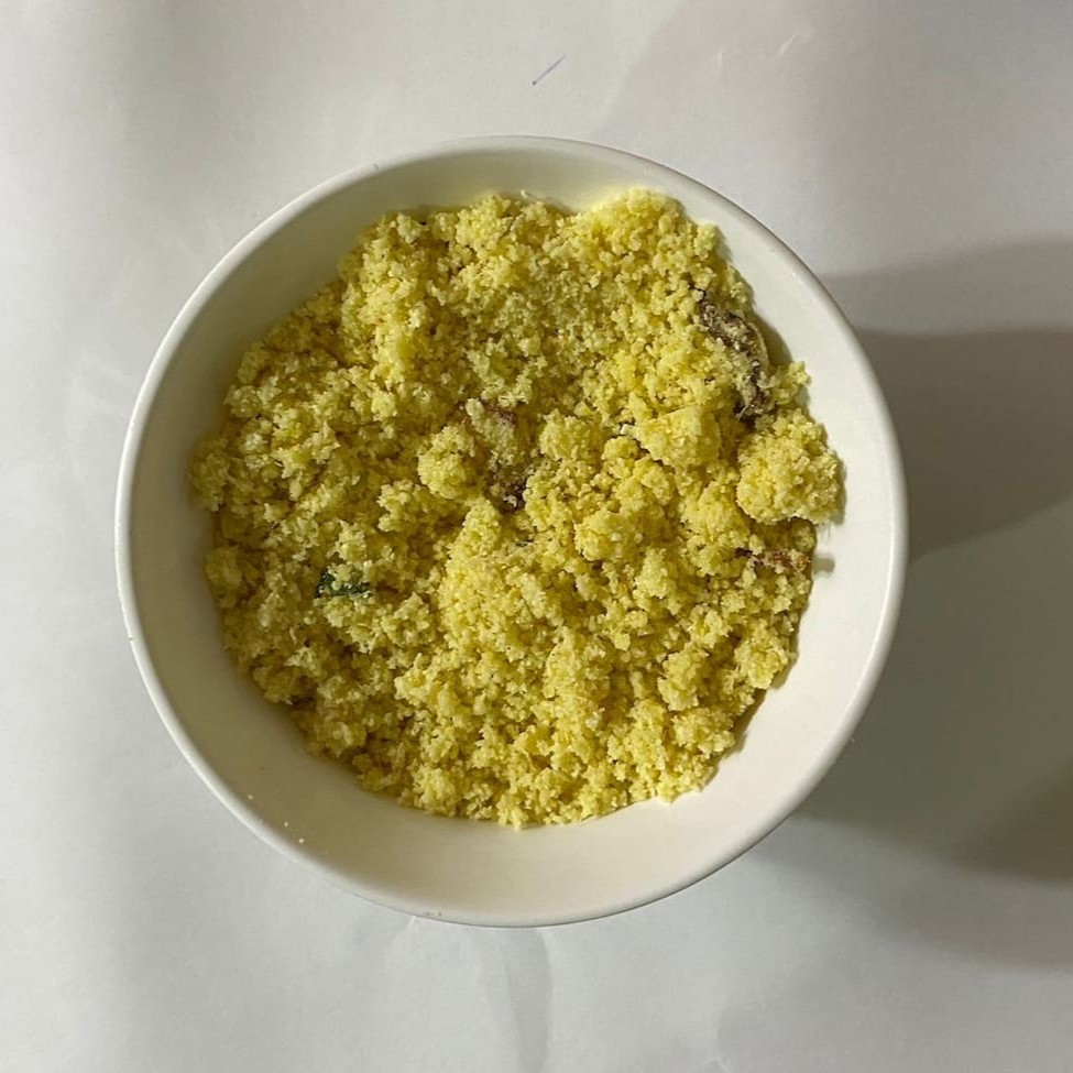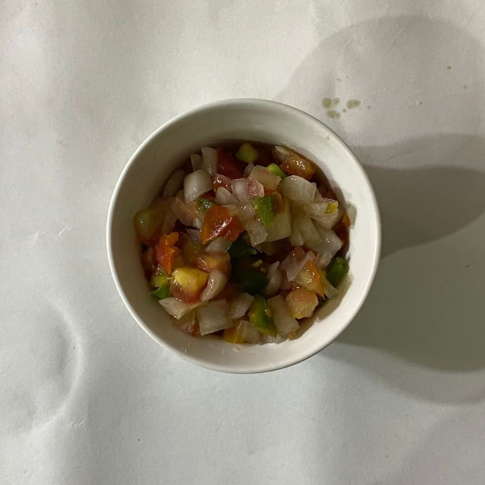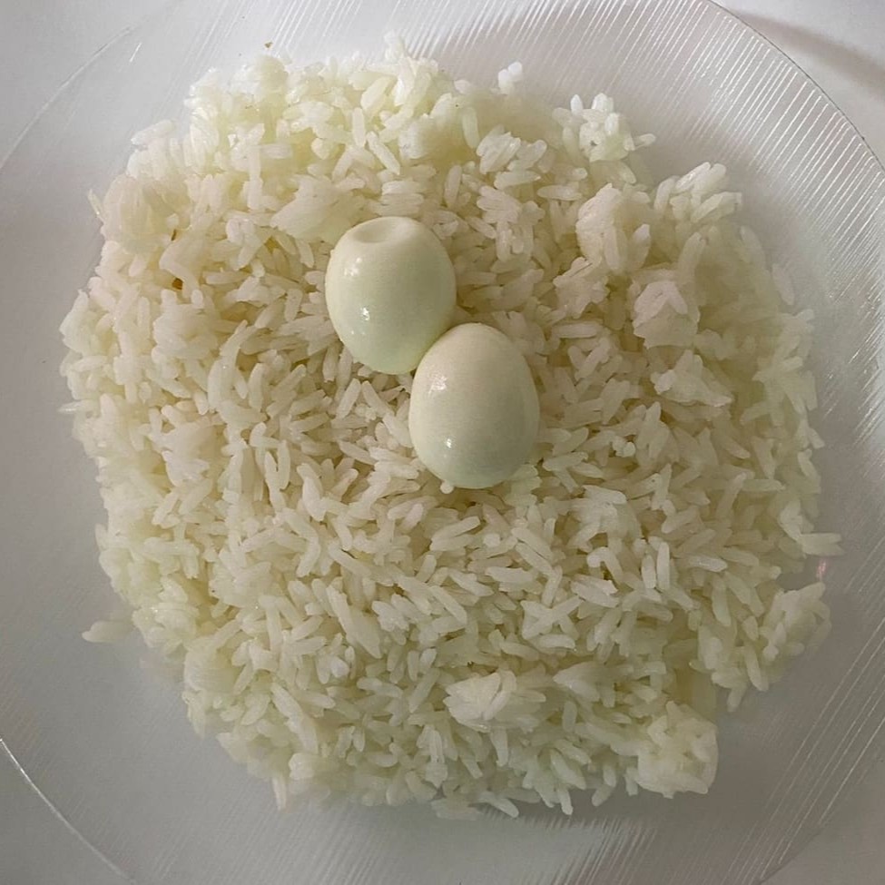 Arroz, farofa, molho a campanha,fritas e dois ovos