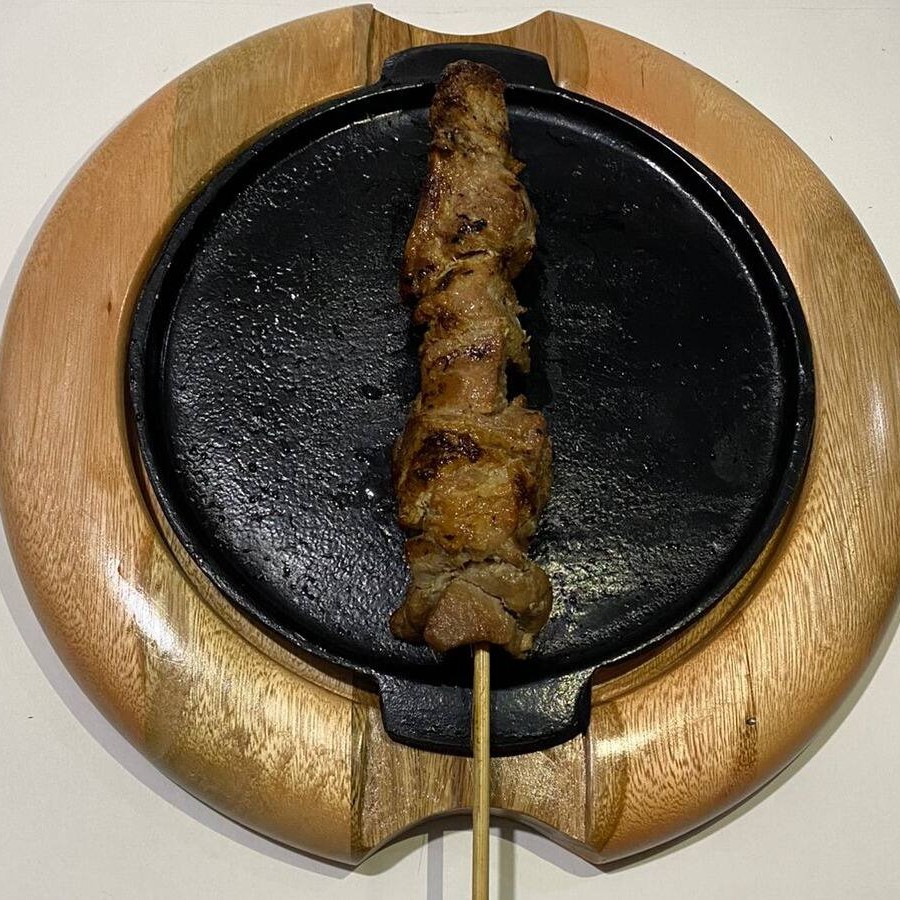Batata,arroz,molho,farofa,maionese ou macarronese,2 ovos de codorna e um espeto