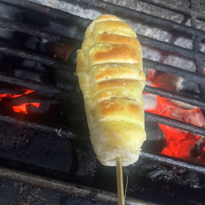 Aipim frito,arroz,molho,farofa,maionese ou macarronese,2 ovos de codorna e um espeto