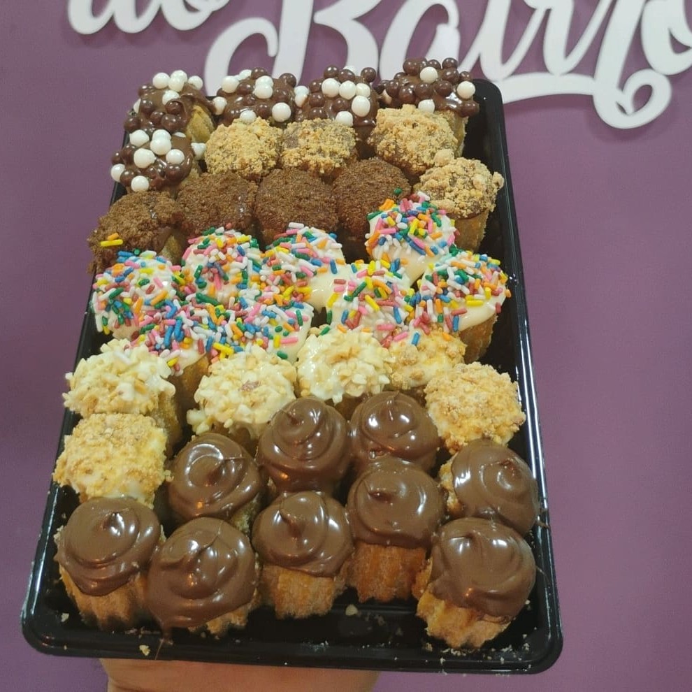 São 40 mini churros todos recheados a sua escolha. Podendo escolher até 5 recheios diferentes, e o complemento para colocar em cima de cada Mini churros é só chamar no chat que colocamos o da sua preferência em cada mini churros O melhor churros de São Gonçalo é na Doce do Bairro