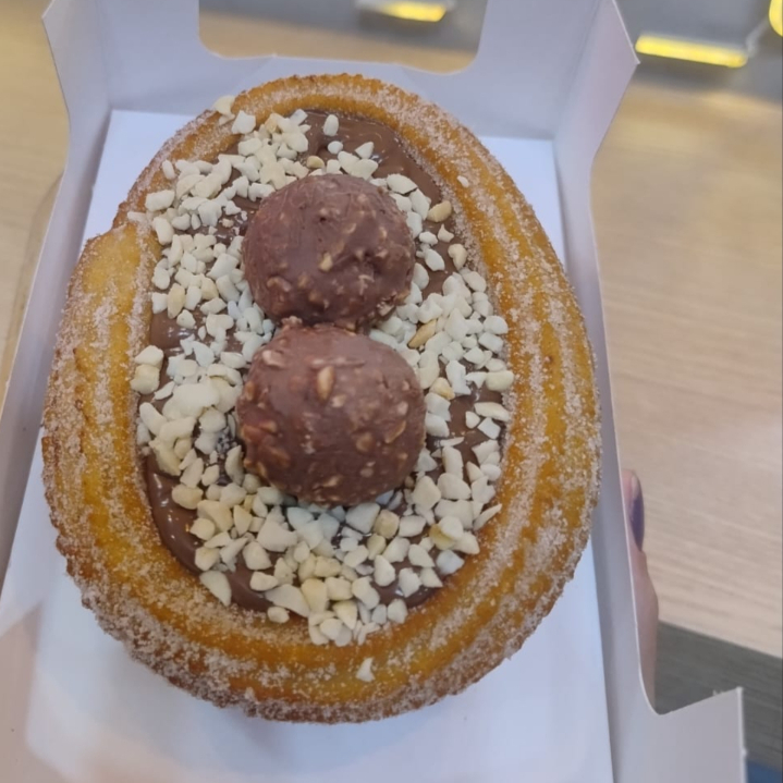 Nosso maravilhoso Ovo da páscoa de Doce de leite com coco, finalizado com 2 bombons de Rafaello, aumentando em 1000% a experiência do melhor churros de São Gonçalo 🥰🥰🥰