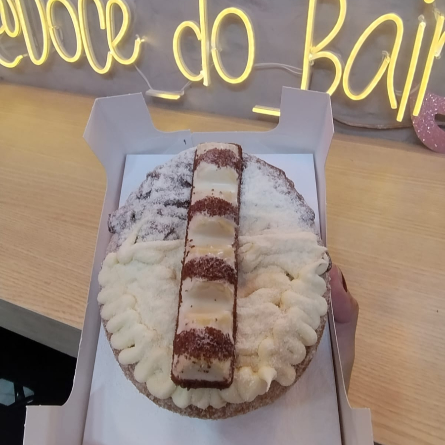 Nossa deliciosa massa, acompanhado de recheio por dentro e por fora e os melhores e mais nobres confeitos por cima.