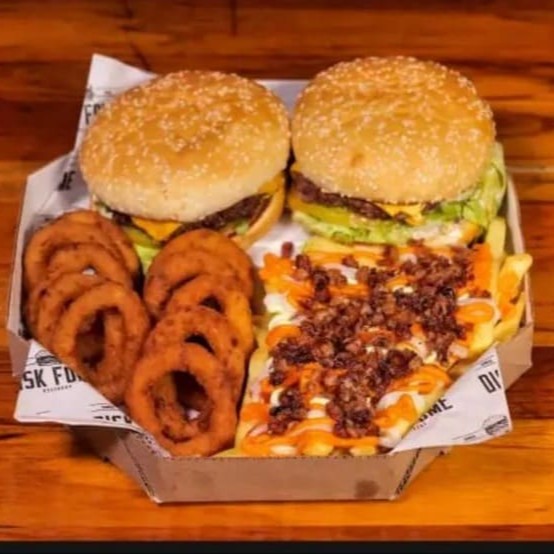 2 X- Tudo + 12coxinhas + 6 Aneis Cebola + Batata Turbinada + 2 Guaravita - Cx 25