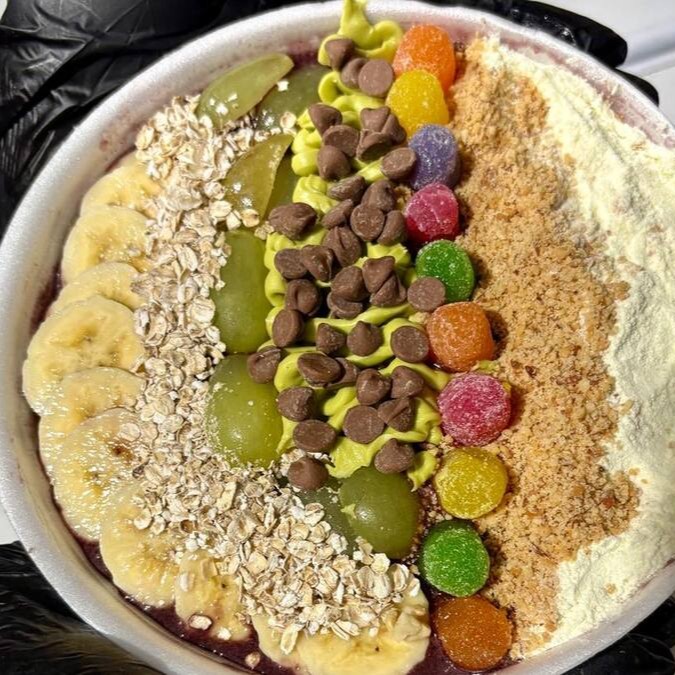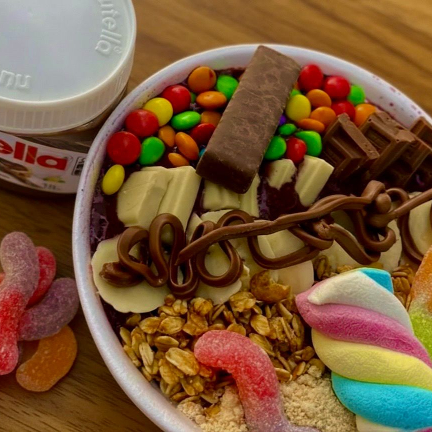 Leite em pó , granola , amendoim , aveia , paçoca , jujuba , Confete