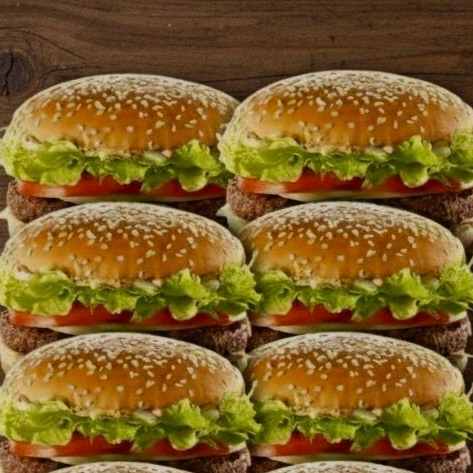 6 Burguers( Pão, Carne, Salada, Ovo, Cheddar e Presunto) + Batata (Bacon, Calabresa, Cheddar e Orégano 2l