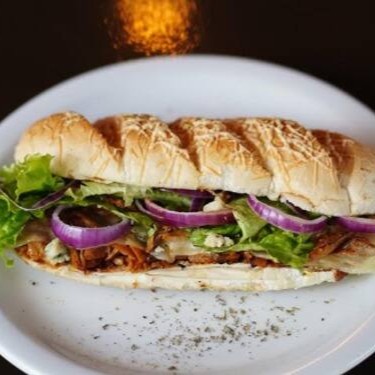 Pernil, Pão de Provolone, Molho barbecue, Alface, Cebola roxa, Geléia de Pimenta