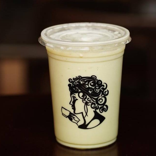 Chá Verde japonês, leite, um toque de gengibre e mel. Cremoso e energético, , sabor leve e refrescante, ideal para qualquer hora do Dia.