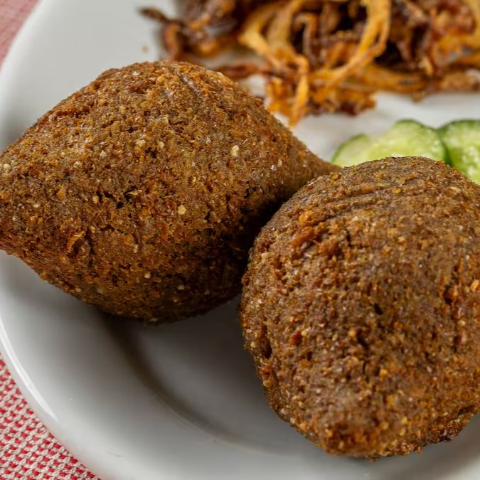 Desfrute o delicoso hambúrguer de kafka grelhado no carvão, extremamente macia com especiarias autênticas, pasta hommus tahine, tomate, alface, salsa e picles árabe