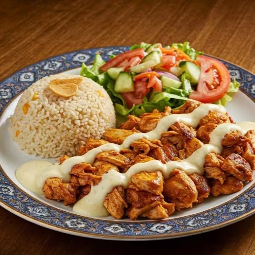 Delicioso sanduíche de kebab de frango shawarma marinado com um tipo especial dos melhores temperos por 24 horas para lhe dar um sabor incrível. Ele vem envolto em pão sírio saudável e nosso creme de azeitona especial para kebab. Definitivamente um sabor irresistível.