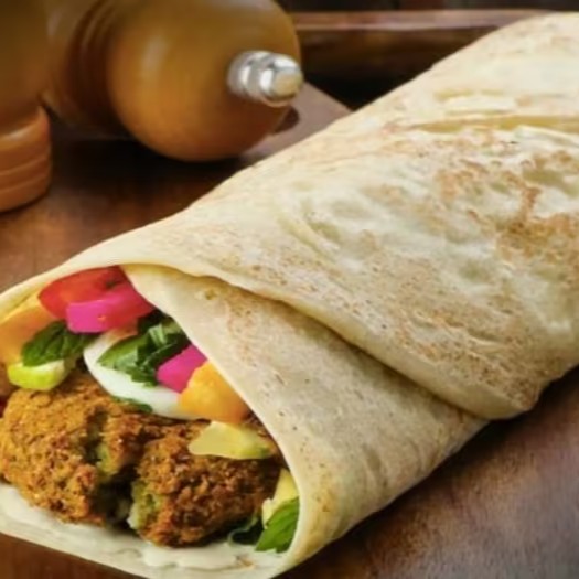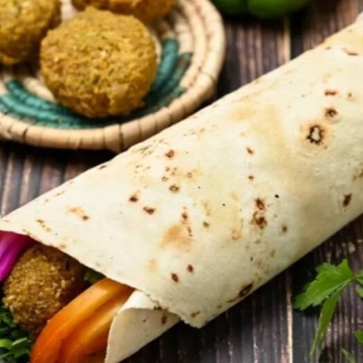 Um dos sanduiche vegetarianos mais ricos da culinária árabe, feito com grão-de-bico triturado em uma mistura de tempero deliciosa, acompanhado de pasta humus tahine, salsa, tomate, alface e picles árabe vem com pacote de salada e pasta humos tahine