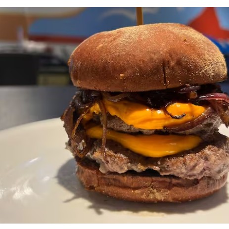 Pão australiano, 2 carnes de 150 gramas, cheddar cremoso, cebola caramelizada ou cebola na manteiga. ( colocar na observação a preferencia )