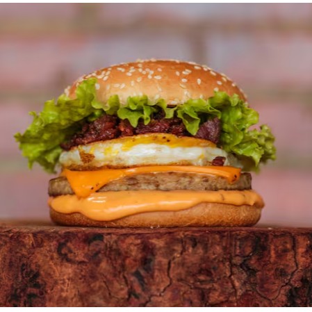 Pão, carne de 150gr, ovo, mussarela, bacon, alface, tomate, cebola e maionese da casa.
