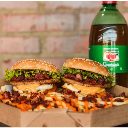 2 Lanches Com Carne Dupla, Batata Turbinada E Um Refri De 1 Litro.