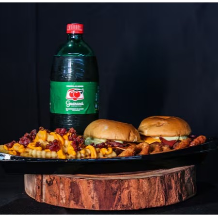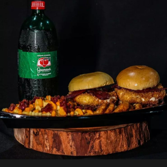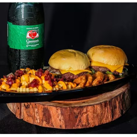 Acompanha 2 lanches 01, batata turbinada e refri de 1l