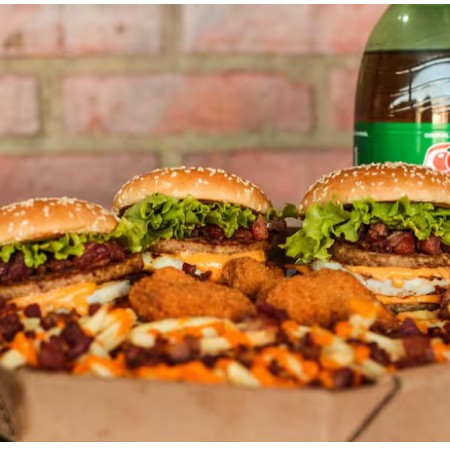 3 Lanches Com Carne Dupla, Batata Turbinada, 6 Unidades De Nuggets E Um Refri De 1 Litro.