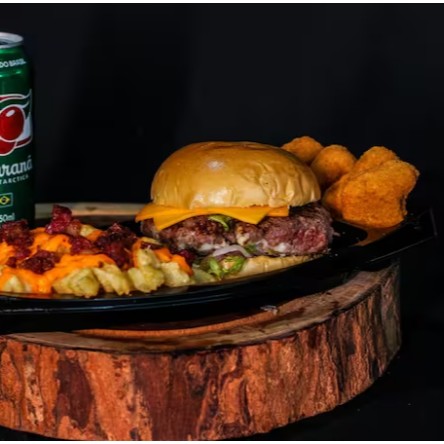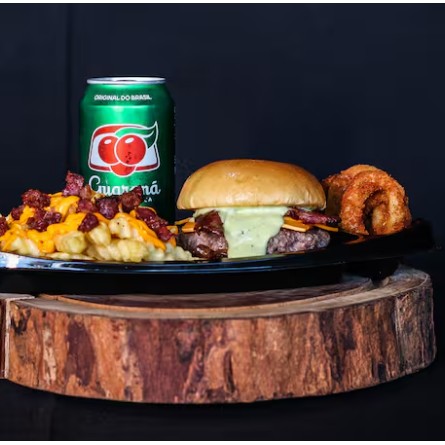 Acompanha Pão de brioche, carne de 150 gramas, mussarela gratinada, bacon e maionese. Batata turbinada e refri.
