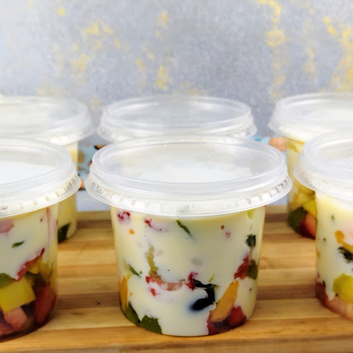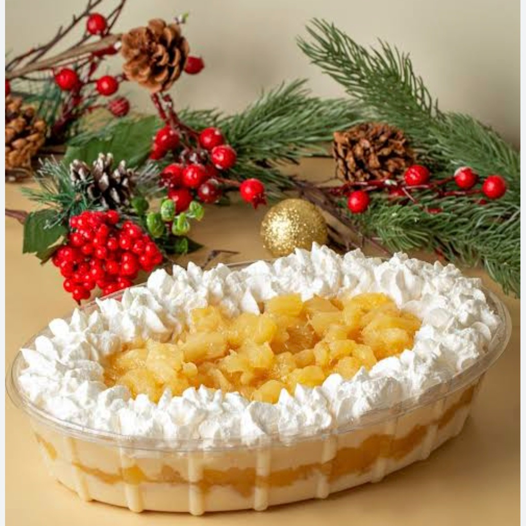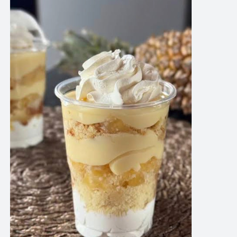 Nuvem de creme ninho, brigadeiro branco, abacaxi, chantilly