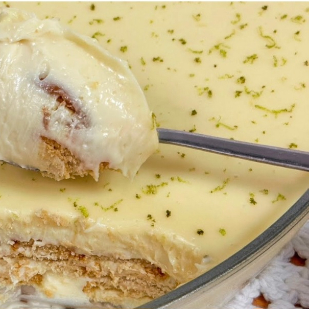 Uma farofinha de biscoito ,creme de limão e chantilly