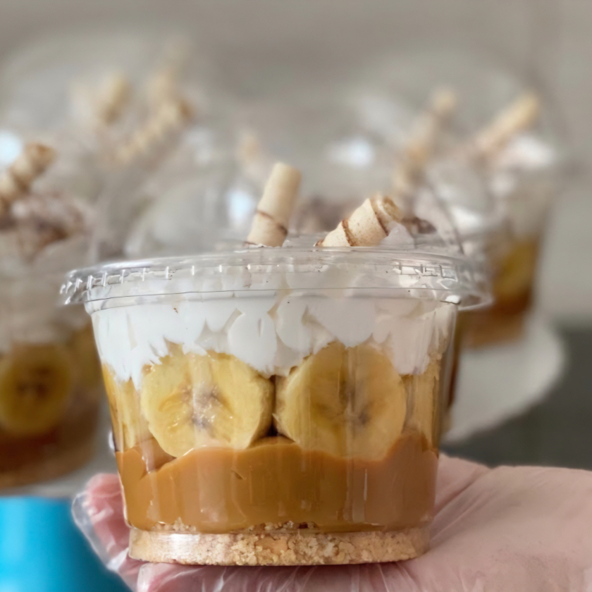 Um delicioso banoffe, com creme ninho,banana e doce de leite.